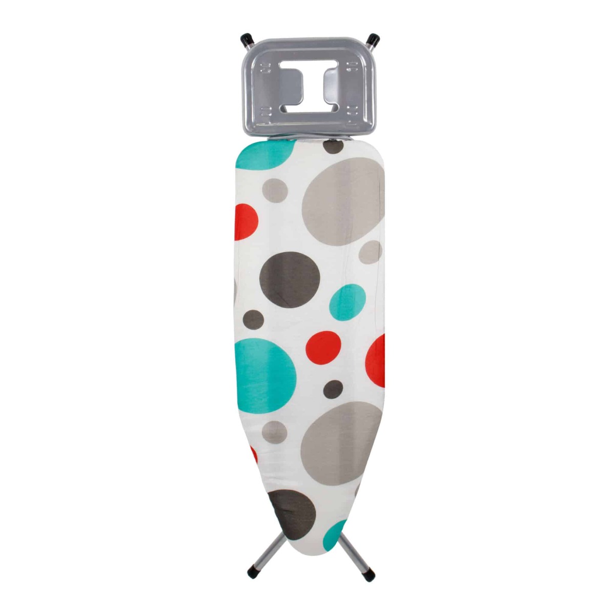 Masa de calcat cu cadru Metalic si priza.Picioare vopsite in camp electrostatic cu sistem antiderapant. Dimensiune blat : 110 x 40 cm. Greutate : 3,75 kg.