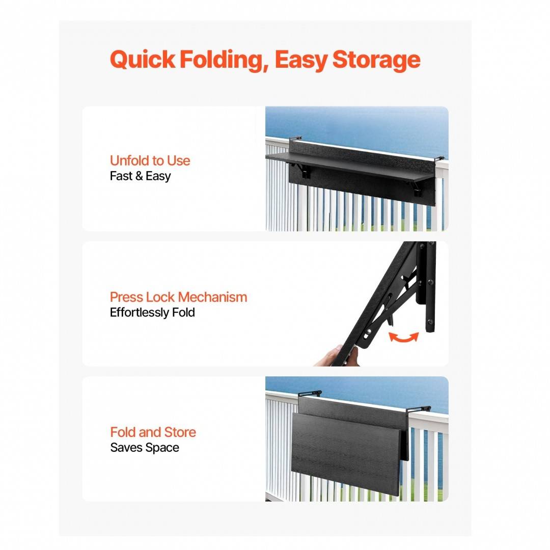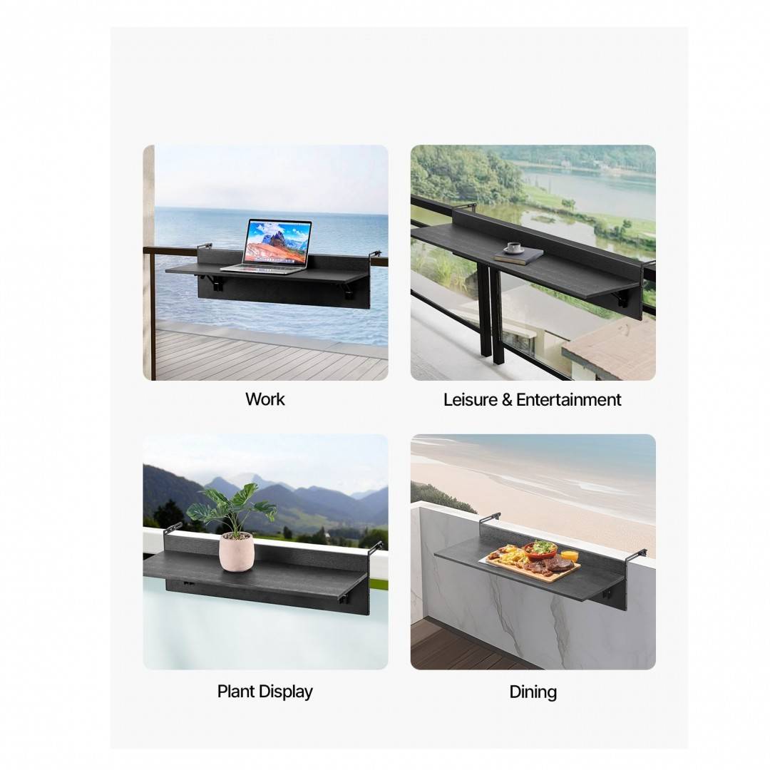 Masa suspendata, pliabila, pentru balcon, Otel Inoxidabil/MDF, max 25 kg, 800 x 450 x 240 mm, Negru