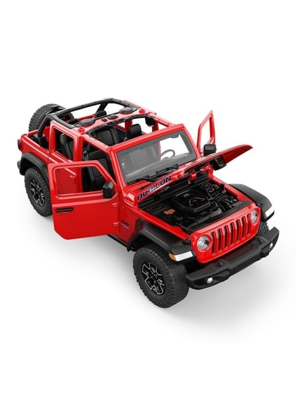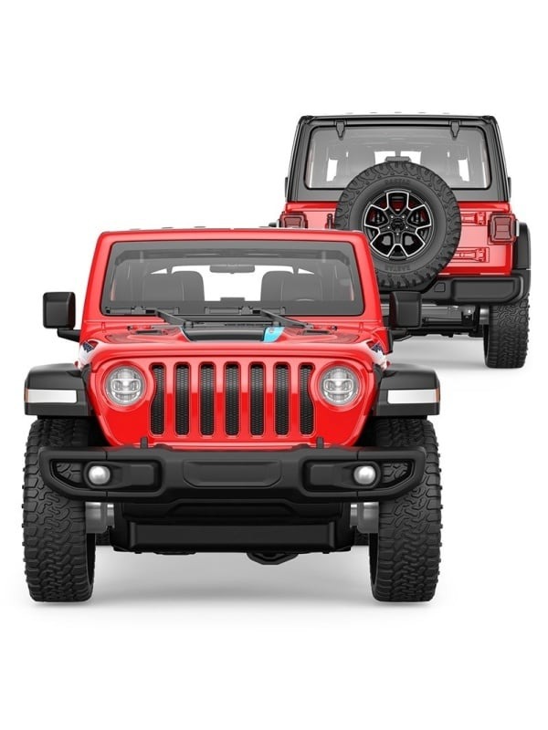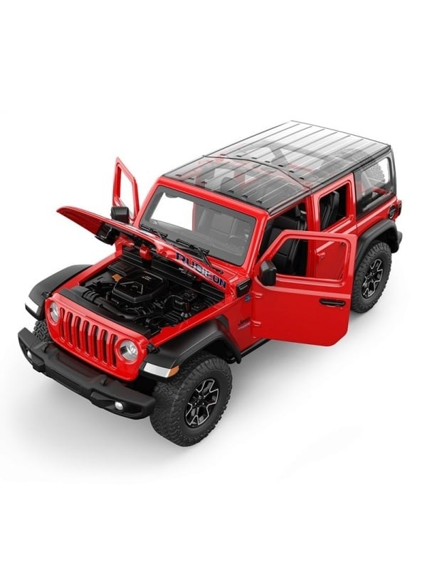 MASINUTA METALICA JEEP WRANGLER RUBICON 4XE ROSU CU SCARA 1 LA 32