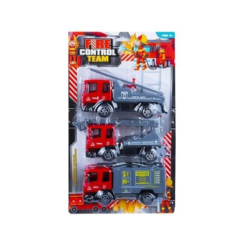 Set de 3 masinute de pompieri modele diferite culori specifice profesiei de pompier. Emuleaza bine realitatea. Caracteristici -set 3 masinute de pompieri - setul contine o masinuta cu scara o autoutilitara cu bazin de apa si un camion pentru tractari - masinutele sunt confectionate din plastic de calitate si au culoarea rosie Avertizare Aceasta jucarie contine piese mici. In cazul putin probabil al inghitirii unor astfel de piese consultati de urgenta un specialist. Produsul este nou si comercializat in ambalajul original al producatorului. Imaginile de pe site au caracter informativ. Ambalajul trebuie indepartat recuperat si aruncat de catre un adult inainte de a se da spre utilizare copilului. Nu lasati ambalajele produselor la indemana copiilor. Se recomanda utilizarea produsului sub supravegherea unui adult. Produsul poate contine piese mici care se pot inghiti sau inhala de cei mici existand pericolul de sufocare sau nu este potrivita copiilor mai mici de 3 ani. Pastrati instructiunile si etichetele pentru referinte viitoare. Pastrati produsul departe de foc si nu il lasati in preajma temperaturilor ridicate si a umiditatii. Nerecomandat copiilor cu varsta mai mica de 3 ani