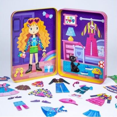 Paseste in universul fascinant al modei si dezvolta-ti simtul estetic si imaginatia in timp ce combini cat mai creativ cei peste 45 de magneti din cutie! Poti crea cele mai inedite combinatii si tinute pentru fetita si, daca doresti, ii poti aranja chiar si camera. Cu o multime de haine si accesorii moderne si asortate, distractia nu are limite! In cutie vei gasit trei planse magnetice, dar poti lipi magneti si pe cele doua parti ale cutiei.