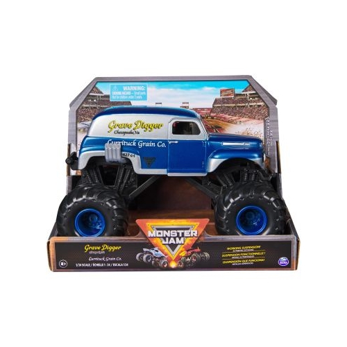 Du la alt nivel jocul Monster Jam cu noul camion monstru oficial, la scara 124, Monster Jam! Cu mai multe detalii si grafica ca pana acum, aceasta replica autentica intruchipeaza stilul si mandria masinilor reale! Anvelopele oficiale de cauciuc BKT ofera o tractiune mai mare, astfel incat sa iti poti duce camionul pe noi culmi! În plus, un sistem de suspensie complet nou si functional absoarbe mai bine impactul, astfel incat sariturile inalte, cu prabusiri, si cele care zdrobesc masinile sa nu se opreasca niciodata! Cu mai multe masini de colectionat ca oricand, a devenit usor sa organizezi propriul tau eveniment Monster Jam! Du-ti camionul monstru Monster Jam la maximum! Aduna-le pe toate! Acest pachet contine modelul Grave Digger.
