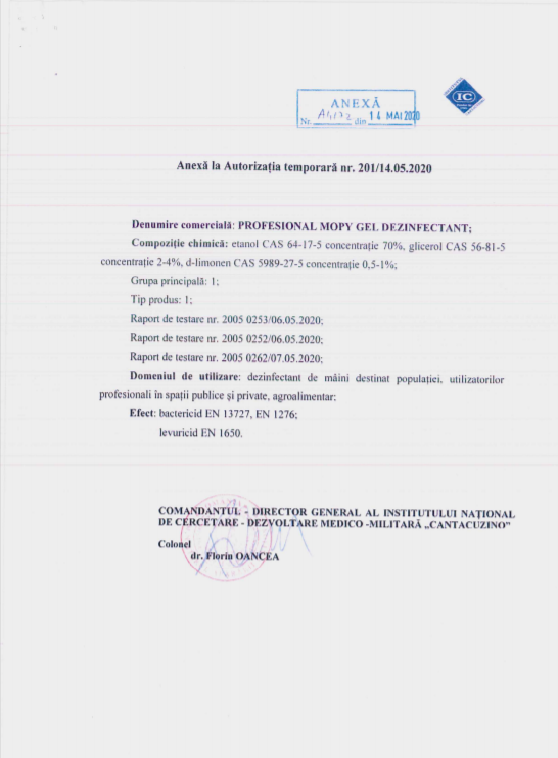 Proprietati Mopi Profesional Gel dezinfectant