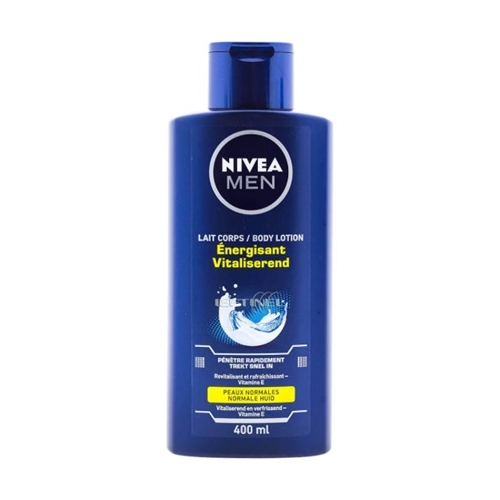 Lotiunea de corp Nivea energizant pentru barbati, cu formula de vitamine E, recomandat pentru pielea normala. Nu lasa urme grase, nu este lipicioasa si se absoarbe rapid in piele.