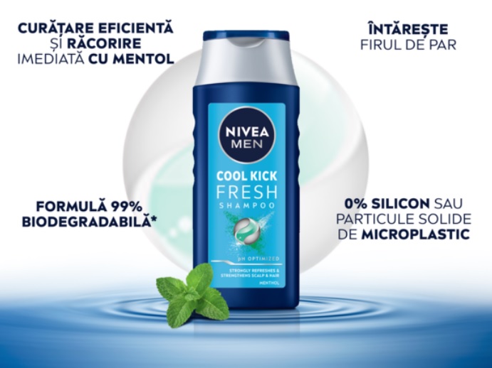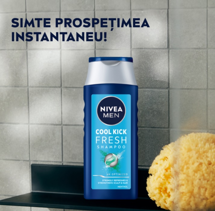 Incearca sampon Nivea Men Cool Fresh pentru un plus de prospetime! Samponul cu mentol si cu pH optimizat curata si improspateaza eficient scalpul si parul pentru mai multa prospetime dupa spalarea parului.
