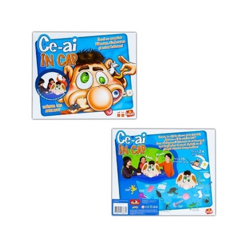 Uneori te uiti la cineva si te intrebi Oare ce-o fi in mintea lui Acum ai raspunsul. Intoarce un cartonas si apoi baga mana in capul zapacit ca sa gasesti obiectul corespunaztor Caracteristici - Kitul contine 1 cap zapacit 15 obiecte amuzante 1 masea stricata 1 rama alunecoasa 1 extraterestru amenintator 1 paianjen veninos 1 soseta purtata 1 crocodil inspaimantator 1 creier gelatinos 1 surub ascutit 1 furnica uriasa 1 broasca testoasa 1 branza puturoasa 1 sobolan murdar 1 limba umeda 1 acadea lipicioasa 1 broasca slinoasa 24 cartoase regulament de joc. - Numar de jucatori 2-4. - Gaseste in capul zapacit obiectul de pe cartonasul tras doar ghidandu-te dupa ce simti fara sa tragi cu ochiul. - Cele 15 obiecte incluse pot fi spalate cu apa calduta si sapun si apoi sunt lasate sa se usuce. Capul poate fi curatat ocazional cu o laveta curata umezita in apa cu sapun. Nu il scufundati in apa si nu folositi detergenti agresivi. Nu se introduce in masina de spalat. - Capul poate fi dezasamblat daca este nevoie dar poate ramane asamblat si utilizat ca decoratiune pentru camera. - Jucaria este realizata din material textil metal si plastic de calitate non-toxice. Dimensiune jucarie aproximativ 25x18x25cm Avertizare Acest produs poate contine piese mici din cauciuc. In cazul putin probabil al inghitirii unor astfel de piese consultati de urgenta un specialist. Produsul este nou si comercializat in ambalajul original al producatorului. Imaginile de pe site au caracter informativ. Ambalajul trebuie indepartat recuperat si aruncat de catre un adult inainte de a se da spre utilizare copilului. Nu lasati ambalajele produselor la indemana copiilor. Se recomanda utilizarea produsului sub supravegherea unui adult. Produsul poate contine piese mici care se pot inghiti sau inhala de cei mici existand pericolul de sufocare sau nu este potrivita copiilor mai mici de 3 ani. Contine coarda lunga. Pericol de strangulare. Pastrati instructiunile si etichetele pentru referinte viitoare. Pastrati produsul departe de foc si nu il lasati in preajma temperaturilor ridicate si a umiditatii. Nerecomandat copiilor cu varsta mai mica de 5 ani