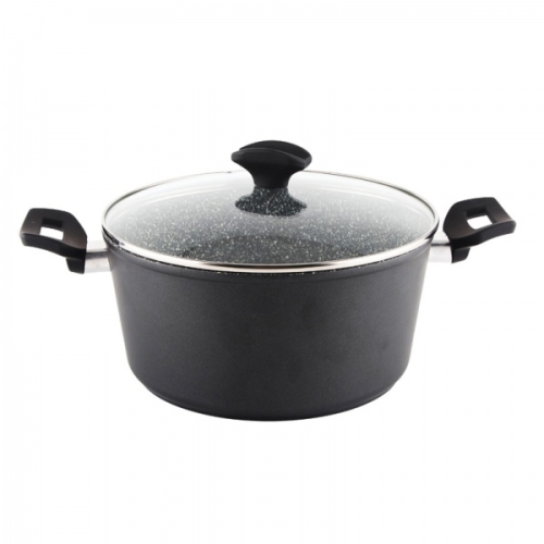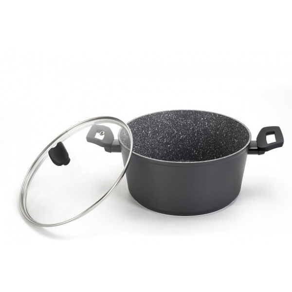 Oala din aluminiu, de 24cm cu interior de granit si capac sticla termorezistenta.