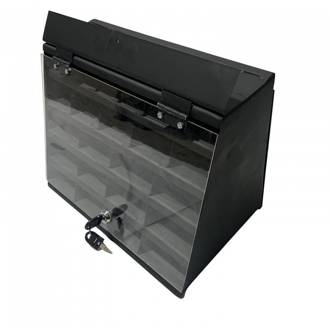 Organizator pentru burghie metal, Vivatechnix VMD-1043, 35x20xH29cm, 20 compartimente, capac transparent cu cheie