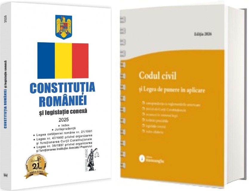 Pachet 2 carti: Codul civil si Legea de punere in aplicare. Actualizat la 8 ianuarie 2026, spiralat si Constitutia Romaniei si legislatie conexa 2025