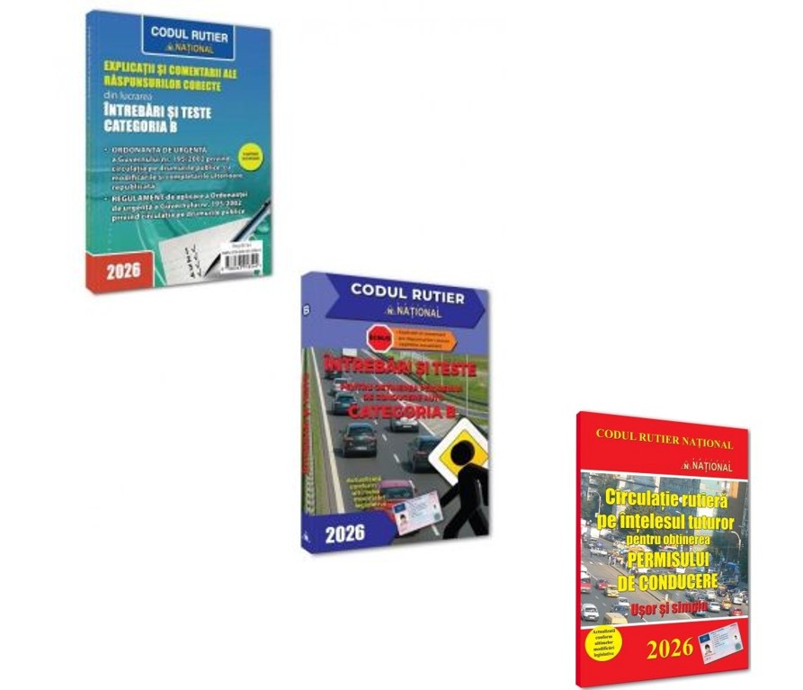Pachet 2026 Obtinerea permisului de conducere auto categoria B. Intrebari teste si legislatie rutiera