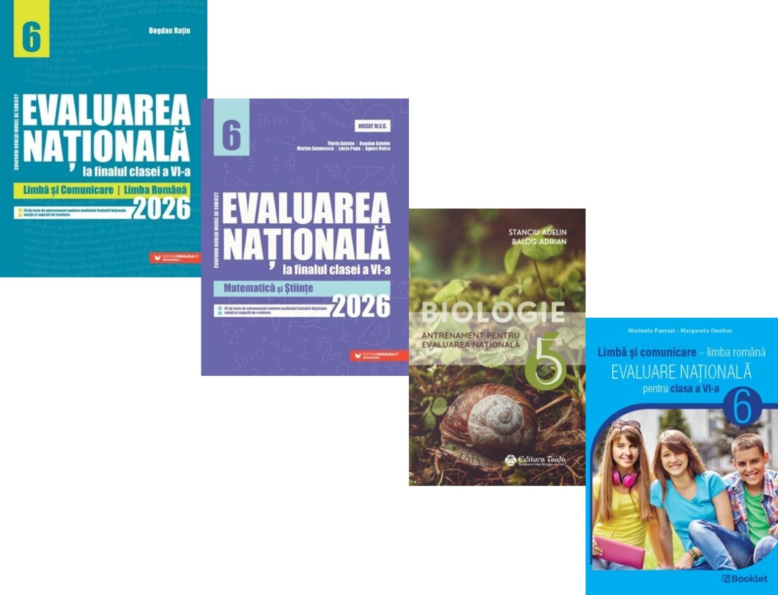 Pachet 4 carti Evaluarea Nationala 2026 clasa a 6-a: Matematica si Stiinte, Limba si comunicare, Limba romana si Biologie - Bogdan Ratiu, Bogdan Antohe, Adelin Stanciu, Marinela Pantazi