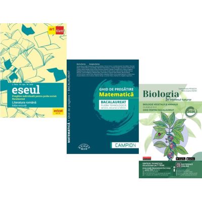 Pachet Bacalaureat 2026. Eseul. Pregatire individuala pentru proba scrisa Matematica filiera tehnologica servicii resurse si tehnic si Biologia pe intelesul tuturor Clasele 9-10 - Liliana Paicu Marius Burtea Maria Ioana Cazan