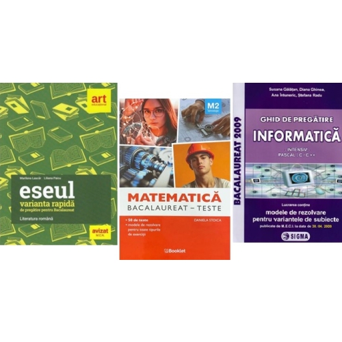 Cartea contine cele 100 de variante de subiecte publicate de Ministerul Educatiei, Cercetarii si Inovarii la data de 30. 04. 2009 pentru informatica intensiv, Pascal / C/C++, precum si modele de rezolvare a acestor subiecte.
