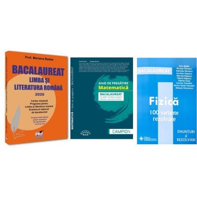 Pachet Bacalaureat 2026. Limba si literatura romana Matematica filiera tehnologica servicii resurse si tehnic si Fizica 100 variante rezolvate - Mariana Badea Marius Burtea Doru Badiu