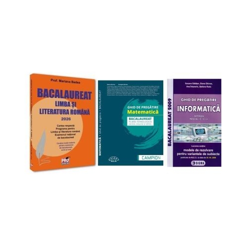 Cartea contine cele 100 de variante de subiecte publicate de Ministerul Educatiei, Cercetarii si Inovarii la data de 30. 04. 2009 pentru informatica intensiv, Pascal / C/C++, precum si modele de rezolvare a acestor subiecte.