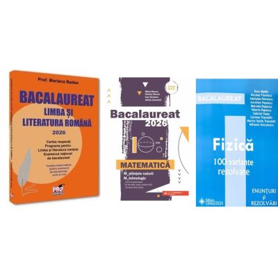 Pachet Bacalaureat 2026. Limba si literatura romana Matematica M-stiintele-naturii si M-tehnologic si Fizica 100 variante rezolvate - Mariana Badea Mihai Monea Doru Badiu