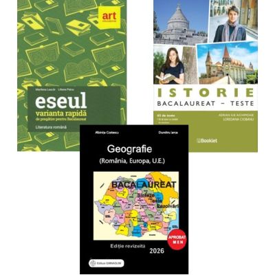 Pachet Bacalaureat Limba si literatura romana Eseul Geografie si Istorie 65 de teste - Liliana Paicu Adrian Ilie Aichimoaie Albinita Costescu