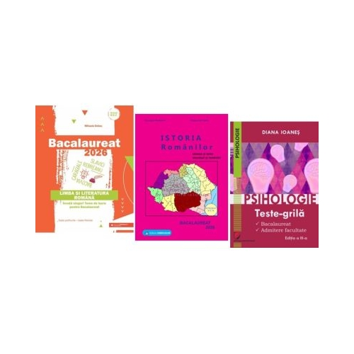 30 de teste de antrenament (Subiectul I), incadrate in diverse Arii tematice, astfel incat fiecare elev sa aleaga domeniile pe care simte ca nu le stapaneste sau care corespund obiectivelor/ preocuparilor sale; planuri de raspuns la textul argumentativ (Poti avea in vedere!), pentru ambele abordari ale temei puse in discutie (DA/NU);