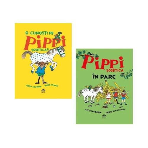 Pachet format din 2 carti O cunosti pe Pippi Sosetica?, Pippi Sosetica in parc - Astrid Lindgren