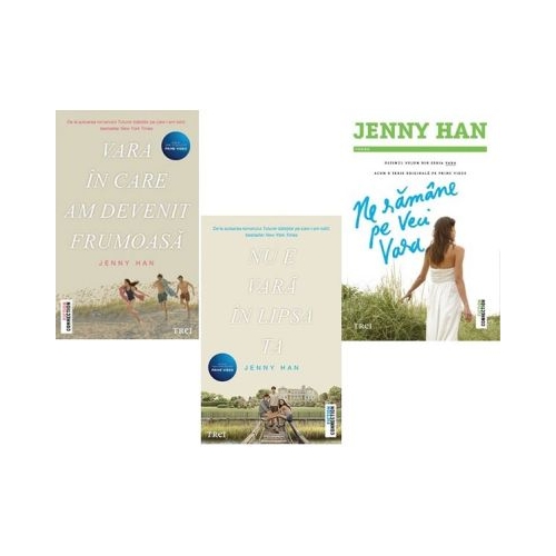 1. Vara in care am devenit frumoasa - Jenny Han De la autoarea romanului Tuturor baietilor pe care i-am iubit bestseller New York Times Unele veri sunt pur si simplu menite sa fie frumoase. Belly isi masoara viata in veri. Tot ce e bun tot ce e magic se intampla intre lunile iunie si august. Iernile sunt doar o perioada in care numara saptamanile pana la vara urmatoare o perioada in care sta departe de casa de pe plaja departe de Susannah si mai ales departe de Jeremiah si Conrad. Ei sunt baietii pe care Belly i-a cunoscut in prima vara petrecuta pe malul marii si care au fost totul pentru ea de la frati mai mari la iubiti. Dar intr-o vara una minunata si intensa totul se schimba si pe masura ce se intampla asta lucrurile devin asa cum ar fi trebuit sa fie inca de la inceput. Cartea aceasta are tot ce-si poate dori o fata intr-o vara. Sarah Dessen autoarea romanelor Just Listen si Lock amp Key Daca as putea trai intre paginile acestei carti as face-o. As trage adanc in piept aerul sarat al oceanului as sta la soare si as petrece toata ziua cu Belly cea buna draguta si amuzanta si cu prietenii ei cei mai buni Jeremiah si Conrad pe care i se pare ca-i stie de o viata. Lauren Myracle autoarea seriei ttyl si a romanului Bliss O lectura pur si simplu delicioasa. Deb Caletti autoarea romanelor Honey Baby Sweetheart si Wild Roses Han imbina convingator naivitatea lui Belly si puterea ei de a intelege schimbarile pe care le-a adus trecerea anilor. Romanul lui Han ne ofera o antrenanta poveste de vara. Publishers Weekly 2. Nu e vara in lipsa ta. Editie tie-in - Jenny Han Este cu adevarat vara fara casa de la Cousins Beach Pentru prima data in viata ei vara aceasta Belly nu se intoarce la Cousins Beach. Taylor prietena sa cea mai buna are o multime de planuri pentru ele doua petreceri pe iahturi sa stea la soare langa piscina si baieti care sa le cada cu tronc. Dar cand Jeremiah le anunta despre disparitia lui Conrad toate drumurile par sa duca inapoi la casa de pe plaja. Va petrece Belly inca o vara incercand sa obtina iubirea lui Conrad sau va pune in sfarsit capat acestei povesti Jenny Han impleteste cu maiestrie povestile din trecutul mai apropiat sau mai indepartat al lui Belly si al lui Jeremiah tesand o urzeala solida de relatii. Kirkus Reviews Jenny Han descrie cu realism felul cum reactioneaza personajele in fata durerii dar si incurcaturile emotionale ale lui Belly cu cei doi frati. Relatia ei cu baietii ajunge intr-un moment de cumpana lasandu-l pe cititor sa astepte cu infrigurare deznodamantul. Publishers Weekly 3. Ne ramane pe veci vara - Jenny Han Ultimul volum din seria Vara Acum o serie originala pe Prime Video Oare va reusi Belly sa aleaga pana la urma intre Jeremiah si Conrad Aflati raspusul in incheierea trilogiei Vara bestseller New York Times si adaptata pentru marele ecran. Belly nu a iubit decat doi baieti ambii purtand acelasi nume de familie. Dupa ce a fost cu Jeremiah in ultimii doi ani e aproape sigura ca el e sufletul ei pereche. Aproape sigura. In timp ce Conrad nu-si poate ierta ca a lasat-o pe Belly sa plece Jeremiah a stiut dintotdeauna ca ea este aleasa lui. Asa incat cand Belly si Jeremiah se hotarasc sa-si lege vietile pentru totdeauna Conrad isi da seama ca trebuie sa aleaga fie ii spune ca o iubeste fie o pierde definitiv. Iar ea va trebui sa-si puna in balanta sentimentele pentru cei doi si inevitabil sa-i franga inima unuia dintre ei. Ochiul impresionant al lui Han pentru descrierea interactiunilor intre adolescentii care inca n-au devenit adulti si acuratetea de care da dovada ofera un final atragator pentru aceasta trilogie cu tineri sclipitori din clasa de mijloc. Kirkus Reviews In incheierea trilogiei Vara Jenny Han subliniaza nebunia logodnelor la varste fragede si descrie in culori vii emotiile unei fete aflate in pragul maturizarii nerabdatoare sa-si implineasca toate visurile. Daca hotararea pe care o ia Belly poate ca n-o sa-i surprinda pe cititori cu siguranta ca le va placea celor care au urmarit-o de-a lungul verilor. Publishers Weekly Jenny Han este autoarea seriei Tuturor baietilor pe care i-am iubit bestseller New York Times si ecranizata de Netflix. De asemenea a scris seria Vara precum si romanele Shug si Clara Lee and the Apple Pie Dream. Cartile sale au fost traduse in peste 30 de limbi. A fost bibliotecara si are o diploma in scriere creativa la New School. Locuieste in Brooklyn New York.