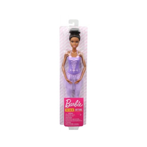 Barbie balerina are o tinuta superba. Costumul are o culoare placuta lila. Papusa are un corset cu detalii incantatore o fustita detasabila si pantofi tematici potriviti pentru pasi de balet. Aspectul de poveste e completat de cocului elegant. Impreuna cu Barbie balerina fetitele pot incepe distractia cu propria coregrafie. Aceste papusi din colectia Barbie balerina au bratele si picioarele in pozitia de balet.