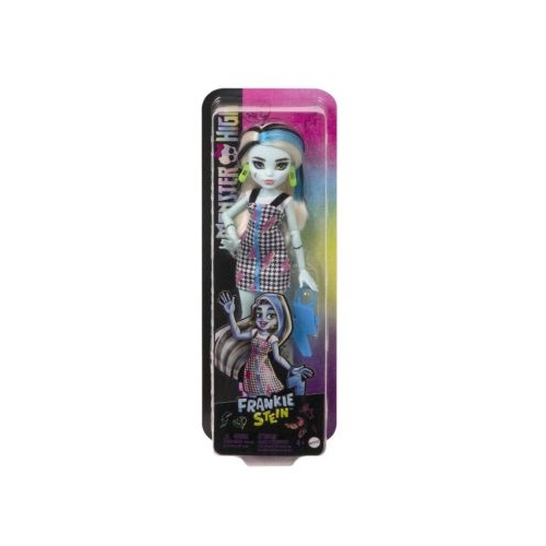 Faceti cunostinta cu elevii scolii legendare pentru monstri cu papusi Monster High Aspectul lor nebun de cool este completat de accesorii asortate cum ar fi o geanta originala si pantofi la moda. Acest lucru va ofera si mai multe oportunitati de a juca si de a crea povesti infricosatoare cu prietenii tai monstri Daca colectezi intreaga colectie jocul va deveni si mai interesant Setul include papusa rochie pantofi geanta accesorii. Fantastic Frankie caruia ii place sa experimenteze culorile combinand armonios albul negru albastru si roz pentru a arata cat mai unic.