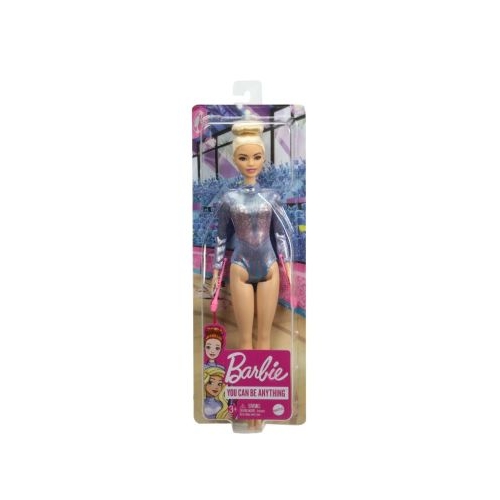 Exploreaza o lume a distractiei gimnastice cu papusa gimnasta ritmica Barbie amp reg Cand o fata se joaca cu Barbie amp reg isi imagineaza tot ce poate deveni iar daca iti place gimnastica si dansul poti fi o gimnasta ritmica Papusa gimnasta ritmica Barbie poarta un tricou metalic colorat si are un coc dragut. Ea vine cu doua bate si o panglica pe care o poate tine pentru a-si efectua miscarile de gimnasta. Copiii vor adora posibilitatile nesfarsite de exprimare creativa si distractie de povestire. Papusa nu poate sta singura. Culorile si decoratiunile pot varia. Este un cadou grozav pentru varstele de la 3 ani in sus.