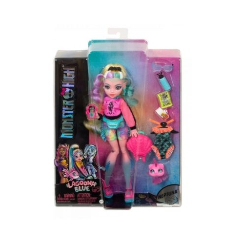 A reinceput scoala iar papusile Monster High apar intr-un stil grozav Papusa Lagoona Blue se plimba pe holurile Monster High imbracata intr-o tinuta fantastica cu un hanorac roz aprins cu maneci din plasa si pantaloni scurti sport la moda. Look-ul ei gore-geous este completat de o borseta atasata in talie un rucsac in forma de scoica si sandale cu platforma colorblock. Schimbati look-ul papusii Lagoona Blue cu un costum de baie metalic cu detalii de solzi de peste si inspirati povesti cu accesorii specifice si cu pestisorul ei de companie infiorator de dragut Neptuna