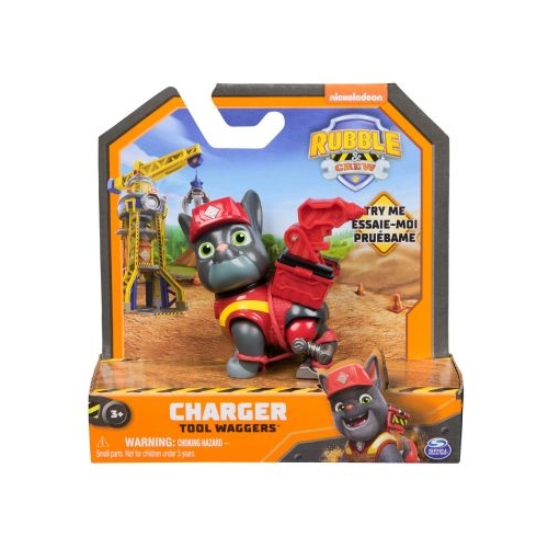 Extinde-ti si mai mult universul PATRULA CatELUsILOR cu figurina Rubble si echipa lui, Charger Tool Wagger! Charger este imbracat in uniforma lui Rubble si echipa lui si include un rucsac special conceput, fabricat din plastic de inalta calitate, ce are o masina de gaurit mobila care pivoteaza in sus si in jos, astfel incat copiii pot crea jocuri de constructie palpitante cu catelul lor preferat, exact ca in serial! Ia acasa toate figurinele Tool Waggers pentru a colectiona figurinele de joaca exclusive Rubble, Wheeler, Mix si Charger . (fiecare se vinde separat) Pentru si mai multe moduri interesante de a te juca, cauta toate jucariile cu camioane de constructii Rubble si echipa lui, plusurile, figurinele de jucarie si seturile de joaca cu nisip Kinetic de constructie Build-It, impreuna cu setul de joaca Turnul Macara Bark Yard si setul de joaca Atelierul lui Rubble pentru a construi si mai mult lumea ta de constructii in joaca de-a imaginatia (fiecare se vinde separat)! Atunci cand cautati jucarii prescolare pentru varste de 2-4 ani, jucariile Rubble si echipa lui pentru copii cu varste de 3 ani si mai mari sunt o achizitie de preferat! Luati acasa energia lui Rubble si echipa lui cu figurina Tool Waggers, Charger! Acest pachet contine personajul Charger.