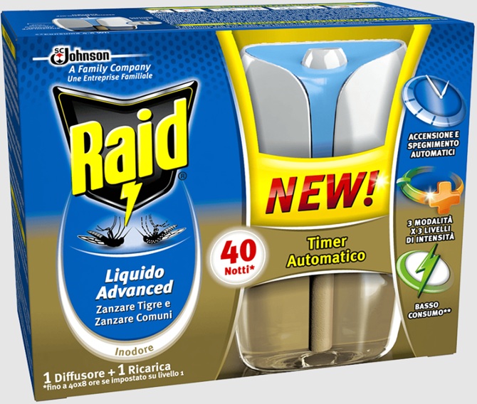 Aparatul electric Raid Liquid ofera protectie continua, timp de 30 nopti (8 ore pe noapte), chiar si cu fereastra usor deschisa si cu lumina aprinsa. Omoara tantarii fara sa mai fie nevoie sa schimbi pastila in fiecare seara. Actioneaza constant pe tot parcursul folosirii, fara a lasa miros de parfum.