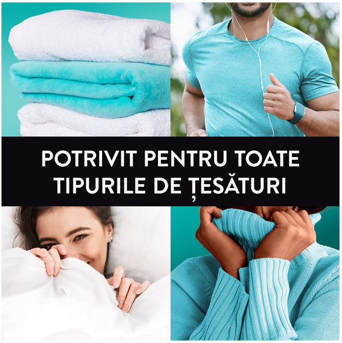 - Perle parfumate pentru rufe, cu miros intens de prospetime;