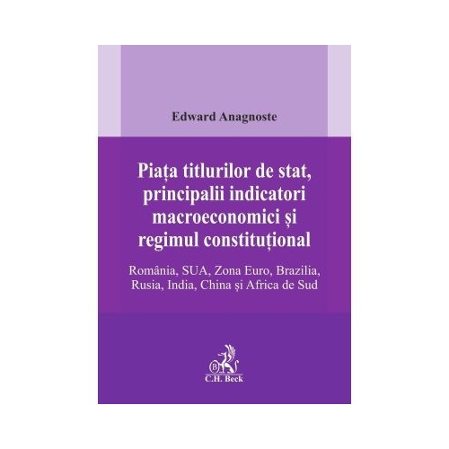 Cu un limbaj accesibil lucrarea se adreseaza atat persoanelor care doresc sa aprofundeze subiectul tratat cat si profesionistilor putand fi un instrument util pentru judecatori avocati auditori din cadrul Curtii de Conturi specialisti din institutii publice si din administratia publica centrala si locala operatori economici precum si pentru persoanele care doresc sa investeasca in titluri de stat. Din cuprins Piata titlurilor de stat principalii indicatori macroeconomici si regimul constitutional din Romania Piata titlurilor de stat din SUA Piata titlurilor de stat din Zona Euro Piata titlurilor de stat din BRICS Brazilia Rusia India China si Africa de Sud reforma fiscal-bugetara Legea nr. 296 2023 comentata si adnotata analiza celor trei elemente piata titlurilor de stat principalii indicatori macroeconomici si regimul constitutional pentru fiecare dintre cele 27 de state analizate respectiv Romania SUA cele 20 de state membre ale Zonei Euro Franta Germania Spania Italia etc. statele fondatoare BRICS Brazilia Rusia India China Africa de Sud analiza principalilor indicatori macroeconomici se refera la deficit datorie publica PIB inclusiv PIB-ul pe cap de locuitor inflatie rating de tara propuneri de proiecte de investitii si mixuri investitionale date aferente principalelor organisme internationale inclusiv ale Bancii Mondiale . Puncte forte analiza riguroasa a pietelor titlurilor de stat a principalilor indicatori macroeconomici si a regimului constitutional din Romania SUA Zona Euro Brazilia Rusia India China si Africa de Sud interpretari si clarificari ale dezbaterilor din doctrina caracter interdisciplinar ample referinte bibliografice Despre autor Edward ANAGNOSTE este consilier juridic in cadrul Ministerului Investitiilor si Proiectelor Europene si expert electoral in cadrul Corpului Expertilor Electorali Autoritatea Electorala Permanenta.