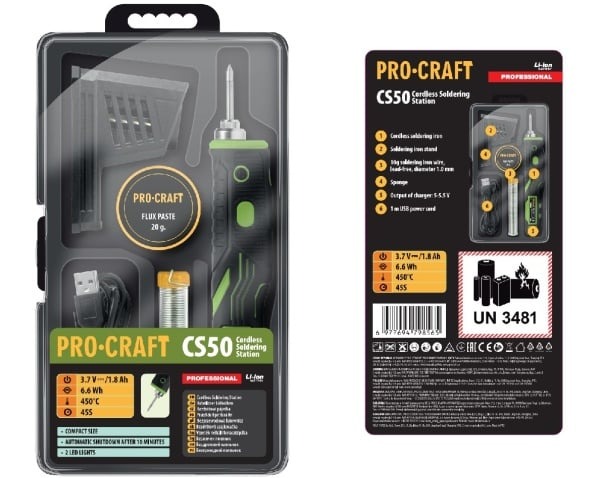Pistolul de lipit universal PROCRAFT CS50 este ideal pentru lucrari precise de lipire, bricolaj si reparatii mici. Alimentat de un acumulator de 3,7 V, acesta ofera pana la 60 de minute de functionare continua, permitand realizarea proiectelor fara restrictii de cablu.