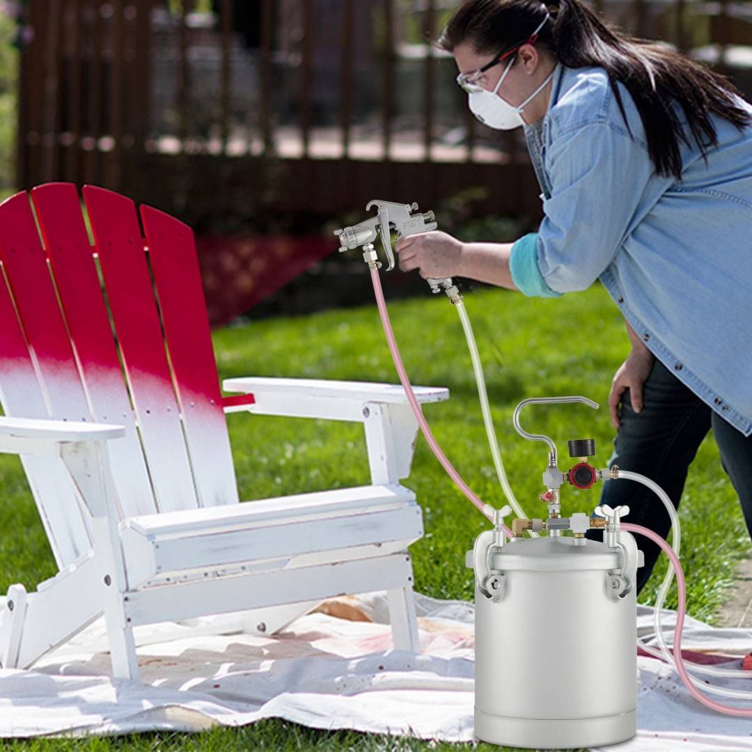Pistol de vopsit cu rezervor sub presiune, Capacitate 10 l, 4 Bar, duza 3 mm, 170-250 l/min, Manometru Sistem de vopsit sub presiune: pulverizatorul de vopsea este un pulverizator usor de utilizat, care aplica un finisaj neted, fara urme de perie. Perfect pentru vopsirea proiectelor mari, cum ar fi exteriorul casei, garduri, terase, garaje, mobilier, ornamente si multe altele. De asemenea, poate pulveriza diverse emulsii, latex, email, grund, etansant transparent si lac. Capacitate vas de vopsea de 10 L: Cu o capacitate de 10 L/ 2,5 galoane, acest rezervor de vopsea cu alimentare sub presiune poate contine multa vopsea. Poate fi folosit pentru proiecte mari si aplicatii industriale. Rezervorul nostru de vopsea este fabricat din otel carbon solid, asigurandu-se ca este rezistent la rugina, la coroziune si usor de curatat. Toate componentele delicate pot fi folosite mult timp. Pistol puternic de inalta eficienta: pistolul de pulverizare in forma de evantai poate obtine un efect de atomizare mai bun. In plus, pistolul de pulverizare din metal rezistent si acul de inalta calitate asigura o acoperire uniforma, neteda si stransa. Furtunul de inalta presiune de 3 m si furtunul de aer de 3 m sustin proiecte pe distante lungi. Puterea de operare este de la 45 la 60 PSI. Blocare rapida si ferma: vasul de vopsea are un sistem de etansare cu blocare rapida, inchidere eficienta, evitand risipa de vopsea suplimentara, economiseste energie si protejeaza mediul. Capacul din otel poate pastra calitatea vopselei, pastrand in acelasi timp culoarea de contaminanti. Detalii atente: puteti fi intuitiv si precis constient de manometrul de presiune si puteti regla butonul de control al fluxului de material pentru a creste sau a reduce rapid productia de material. De asemenea, supapa de siguranta si supapa de reglare a debitului pot asigura stabilitatea si maximiza durata de viata a pulverizatorului. Specificatii pistolului de pulverizare cu alimentare sub presiune Duza standard: 3 mm Presiune de operare: 45 pana la 60 PSI (3,0 pana la 4,0 bar) Latimea modelului: 7,1 pana la 9,1 (180 pana la 230 mm) Consum de aer: 6,0 pana la 8,8 CFM (170-250 l/min) Specificatii rezervor de vopsea de alimentare sub presiune Capacitate vas de vopsea: aproximativ 10 litri Presiune de functionare a rezervorului de vopsea: optima 25-30 PSI Ansamblu furtun: furtunuri de aer si lichid de 6 m Intrare aer: 1/4 Intrare lichid: 3/8” Continutul pachetului 1 X pistol de pulverizare 1 rezervor de 10 l cu regulator de aer si supapa de siguranta 2 X furtun 1 X perie 1 X manual de instructiuni