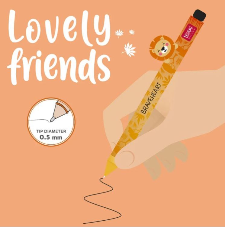 Cu stiloul decorativ Leu Gel de la Legami din familia Lovely Friends, ești mereu în companie bună. Prietenul tău Hippo nu numai că îți face fiecare zi super drăguță, dar va avea grijă și de stiloul tău oriunde îl lași jos, astfel încât să nu se rostogolească.