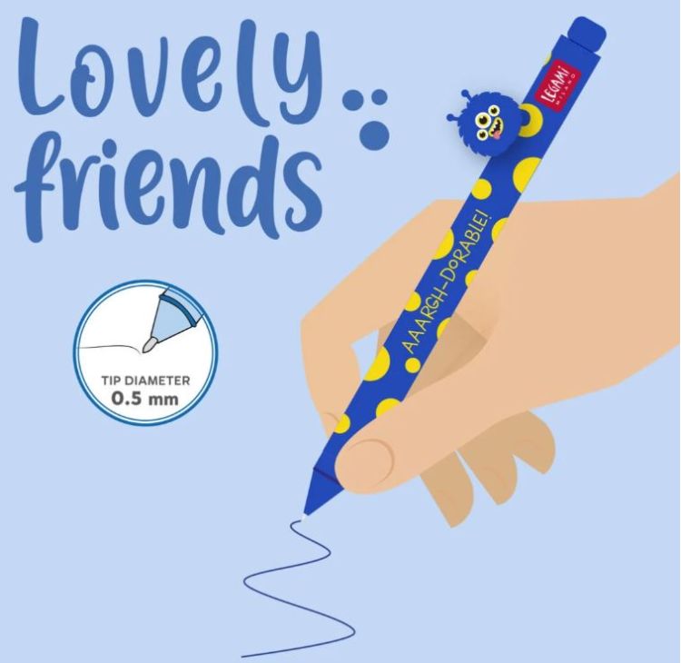 Cu stiloul decorativ Monstru Gel de la Legami din familia Lovely Friends, ești mereu în companie bună. Prietenul tău Hippo nu numai că îți face fiecare zi super drăguță, dar va avea grijă și de stiloul tău oriunde îl lași jos, astfel încât să nu se rostogolească.