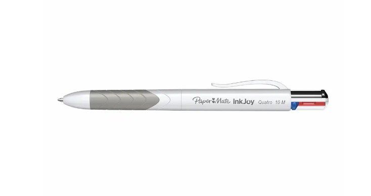 Fa scrisul de patru ori mai distractiv! Pixurile retractabile Paper Mate InkJoy Quatro contin patru culori de scriere. Doar faceti clic pentru a comuta intre nuante si bucurati-va de o scriere ultra-neteda. Designul 4 in 1 are un corp usor de tinut, cu utilizare confortabila si butoane cu click rapid. Excelente pentru note in coduri de culori, aceste pixuri va ajuta sa va mentineti ideile organizate.