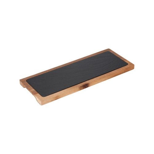 Platou format dintr-o placa de ardezie incadrata intr-o structura din lemn dimensiuni 300x100 mm
