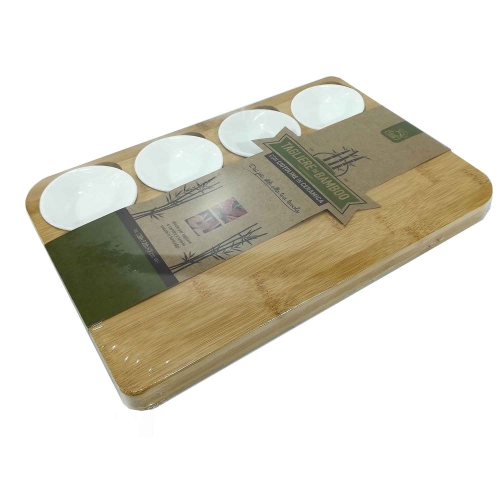 Platou servire din lemn, cu 4 locasuri pentru boluri, dimensiuni 200x300x30h mm