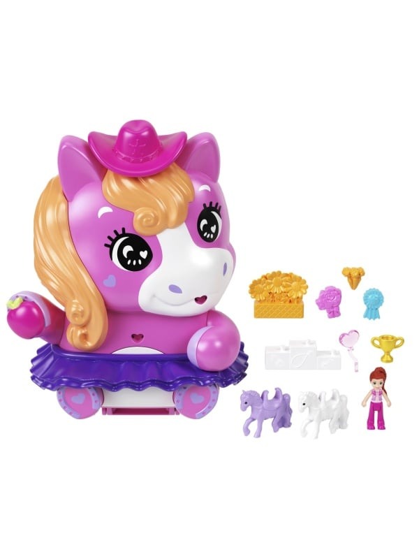 POLLY POCKET SET GENTUTA ANIMALUT PONEI LA RODEO CU ACCESORII