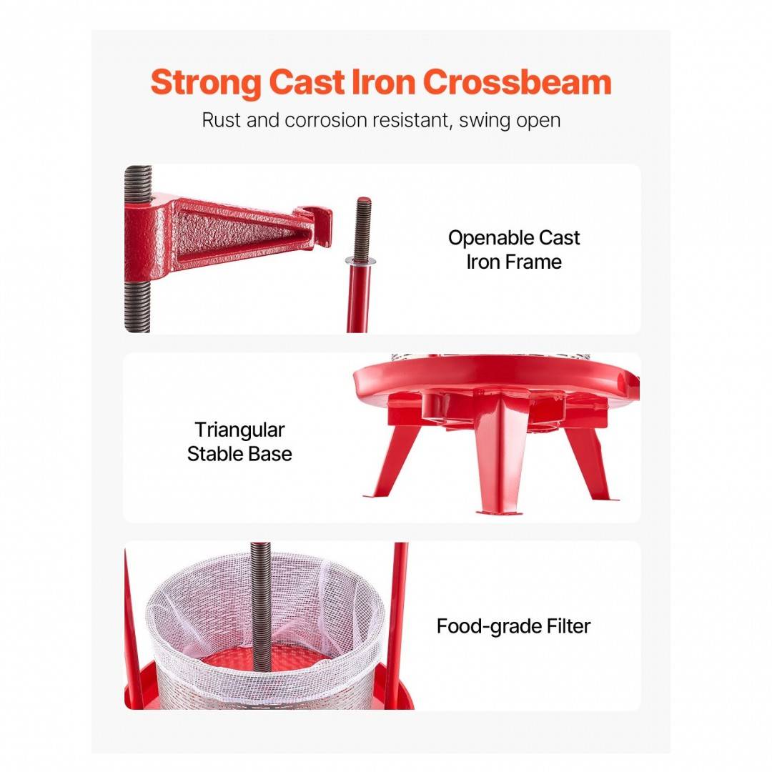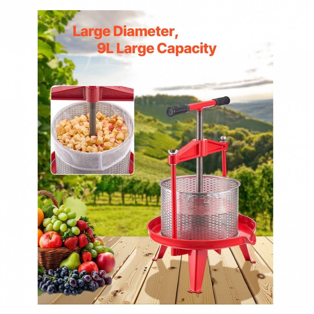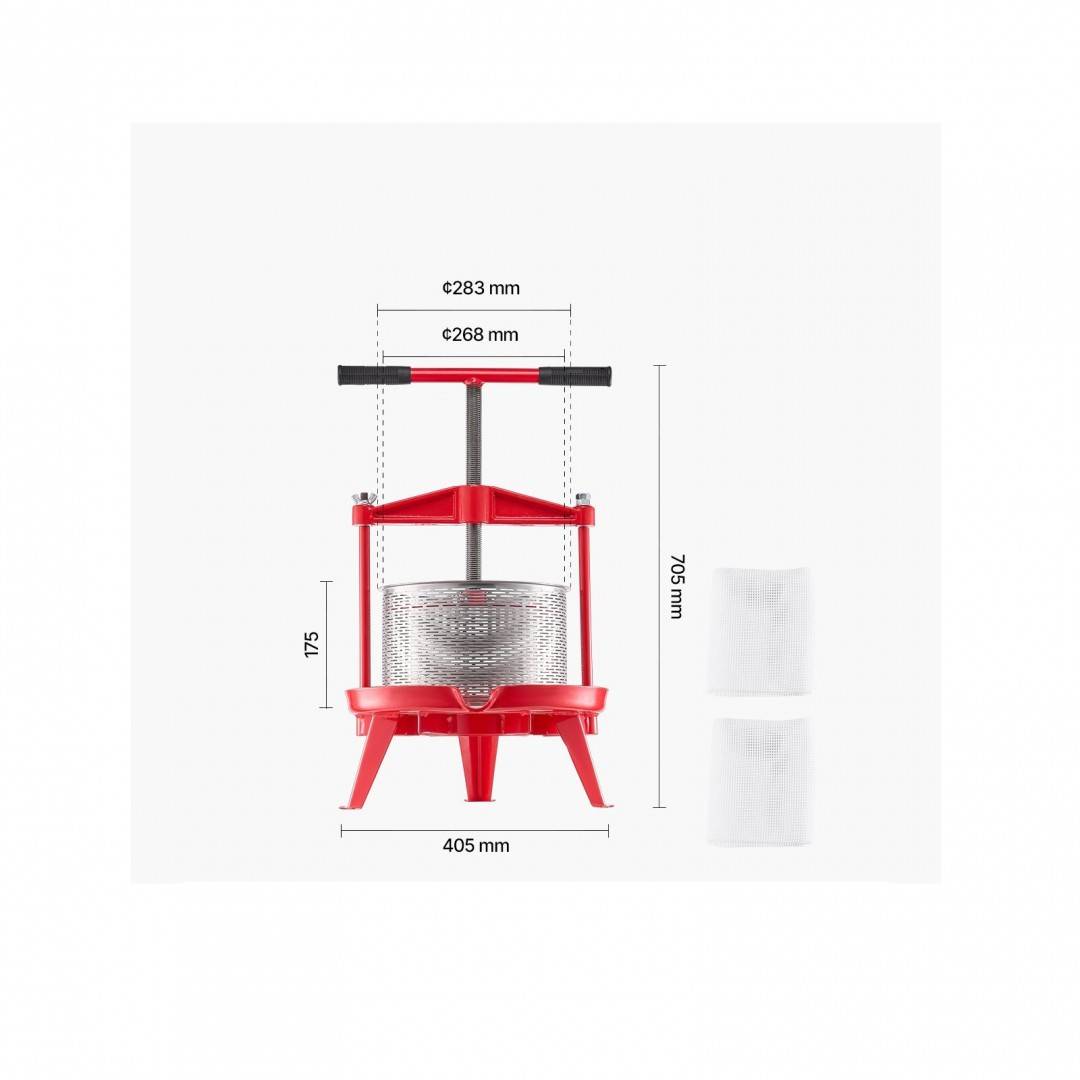 Presa manuala pentru struguri si fructe moi, Capacitate 9 l, Inox/Fonta, 405x705 mm