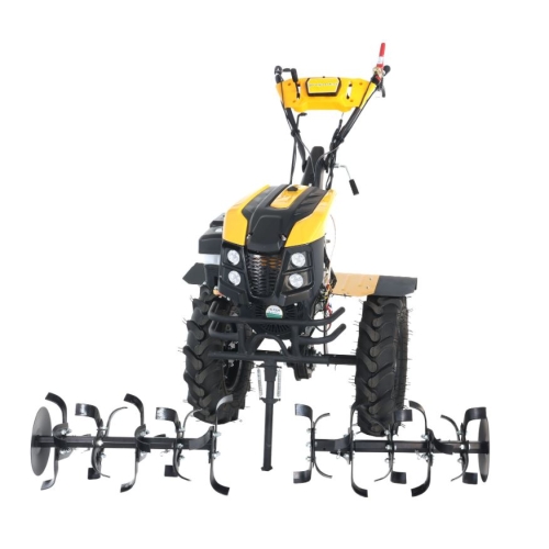 Motocultor pentru tractari grele, frezat, arat si alte operatiuni agricole, echipat cu roti mari 6.00x12, cu profil agricol, viteza de deplasare ridicata si aderenta buna.
