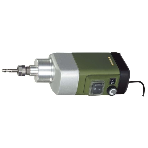Baza motorului este fabricata din aluminium turnat sub presiune, avand posibilitatea de prindere atat pe standurile de gaurire standard MICROMOT (cu gulerul de 20 mm) cat si pe standul Proxxon BFB2000 (sau standurile universale) cu gulerul de prindere de 43 mm (standard european).