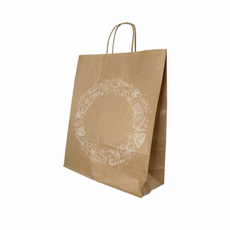 Punga cadou Craciun Colorarte 1070, A3, 32x41x12cm, 100g/mp, kraft, manere din hartie rasucita, motive de Craciun