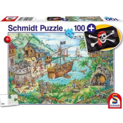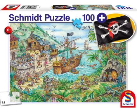 Puzzle Schmidt: Insula piratilor contine 100 de piese de puzzle + Cadou un steag de pirat. Insula piratilor este plina de primejdii, comori, respectiv de multa distractie. Bem rom, Bem rom! Pirati suntem!