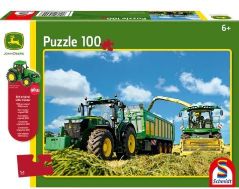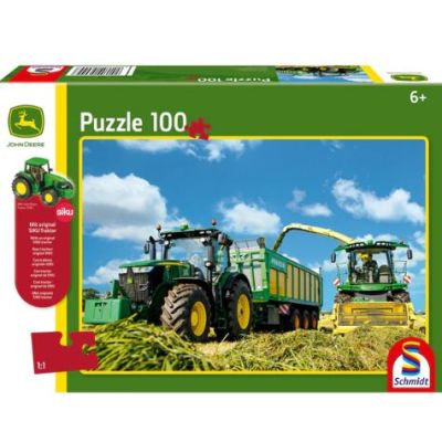 Puzzle Schmidt: John Deere - Tractor 7310R si combina de recoltat 8600i contine 100 de piese de puzzle + Cadou un tractor original SIKU. Agricultura este stiinta si arta cultivarii plantelor si a cresterii animalelor.