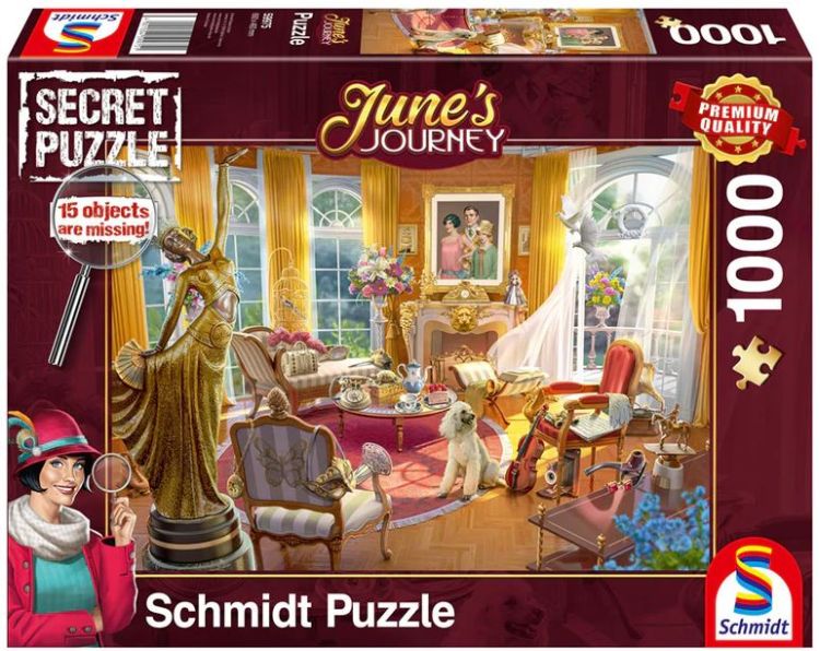 Puzzle Schmidt: I. Journey - Salonul de pe mosie, 1000 piese - o provocare cu adevarat interesanta pentru iubitorii de puzzle-uri si enigme. Poza de pe cutie nu este completa. In timp ce rezolvam puzzle-ul, putem descoperi 15 detalii pe care nu le-am putut vedea pe cutia acestuia.