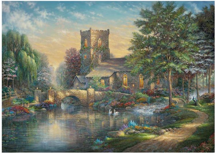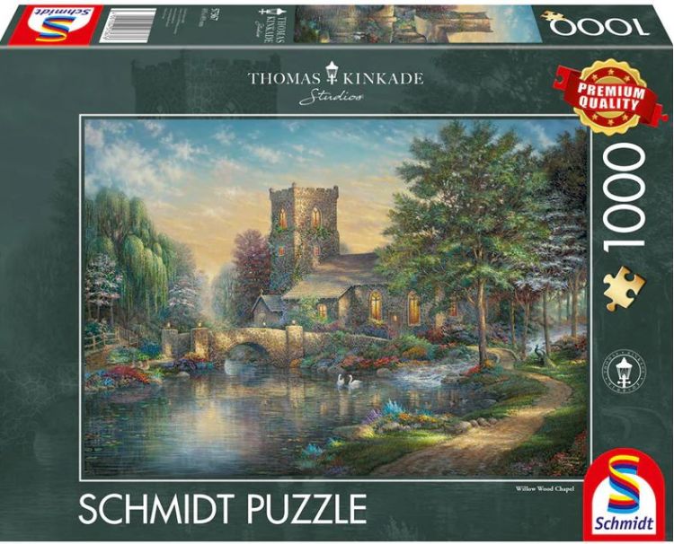 Puzzle Schmidt: Thomas Kinkade - Capela din lemn de salcie - contine 1000 piese de puzzle.