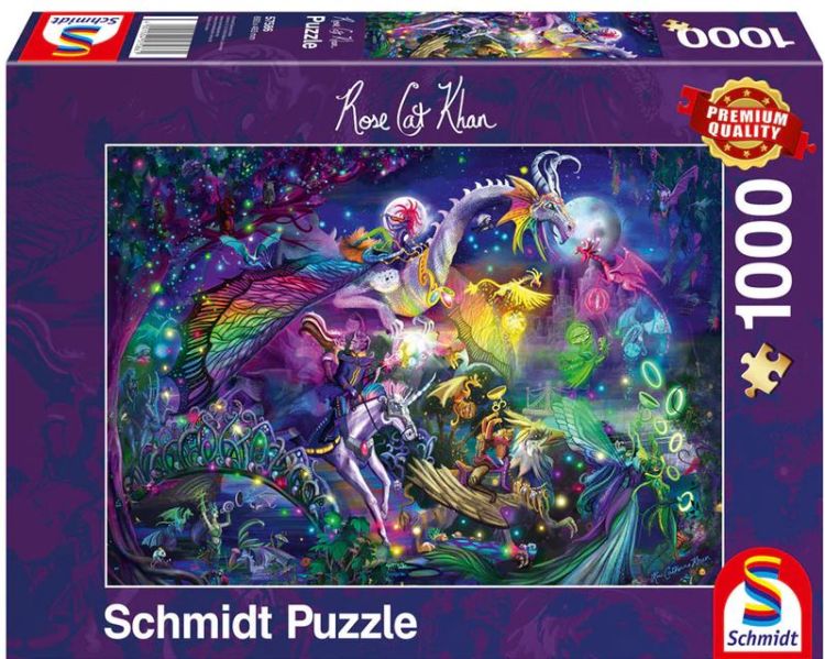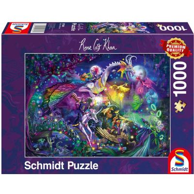 Puzzle Schmidt: Rose Cat Khan - Circul noptii de vara - contine 1000 piese de puzzle. Este un maestru al imaginatiei si incanta privitorul cu ilustratiile sale pline de detalii si de culoare. Ii place in mod deosebit sa conceapa motive si figuri complexe de puzzle.