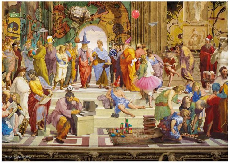 Descoperiti piesa cu piesa capodopera clasica a lui Rafael, infatisand mari filozofi si invatati ai antichitatii intr-o scena impresionanta si plina de detalii.